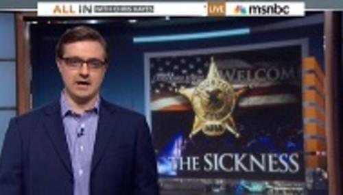 On Friday's All In show, with the words "The Sickness" displayed on screen behind him, MSNBC host Chris Hayes began the show with a commentary in which he tagged the NRA as a "far-right fringe organization" that "might be spelling their own demise" by celebrating the defeat of the universal background check proposal. Hayes:
