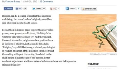 Sure, "Religion can be a source of comfort that improves well-being," writer Francine Russo noted, "But some kinds of religiosity could be a sign of deeper mental health issues" (emphasis mine):