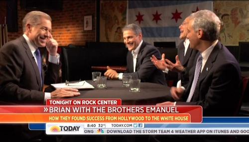 Previewing a fawning Brian Williams interview with Chicago Mayor Rahm Emanuel and his brothers, Ari and Zeke, set to air on Friday's NBC Rock Center, Today co-host Savannah Guthrie proclaimed the siblings to be "an American success story times three." [Listen to the audio or watch the video after the jump]