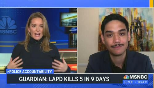 On Thursday afternoon, MSNBC host Katy Tur pushed for police officers to be less armed when they go into dangerous situations as she fretted that LAPD officers had too much weaponry when they responded to reports of a violent attack at a Burlington Coat Factory.