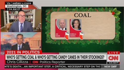 Something must be in the air at CNN. Both today and yesterday, they abandoned their usual sucking-up to the Biden administration to give more accurate, brutal assessments. On Christmas Eve, Chris Cillizza did a segment on New Day where he gave “coal” to both Joe Biden and Kamala Harris, and gave a candy cane to the media-maligned….Ron DeSantis?