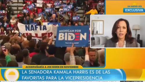 It looks like Telemundo has made up its mind about who should be the Democratic vice presidential candidate: Senator Kamala Harris (D-CA). Just this week, the network granted her close to nine minutes of editorial time with an exclusive interview that has so far appeared on two news programs, six different online links on Telemundo…
