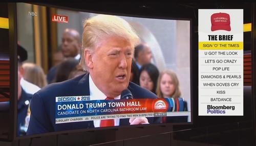 From Tuesday’s With All Due Respect on Bloomberg TV and MSNBC, “Trump’s Hand Gestures,” a collection of Donald Trump’s animated hand movements. Co-host Mark Halperin explained Bloomberg’s producers identified “73 distinct motions” in a Trump speech in Buffalo the day before and, for this video compilation, they showed and named a bunch of them – including “The Bunny,” “The Claw,” The Forehead…
