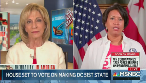 Just hours ahead of a stunt by House Democrats to vote for Washington D.C. statehood on Friday, MSNBC’s Andrea Mitchell Reports brought on Democratic Mayor Muriel Bowser to try to boost the effort that was doomed to fail. After a few softball questions, Mitchell started attacking Republicans with the question, “How frustrating is it that Mitch Mcconnell won't even bring it to the…