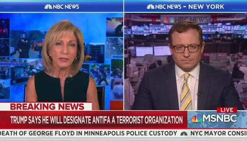 Even after radical left-wing groups vandalize news buildings, they still get defended by their friends in the media. After NBC scoffed at President Trump for calling out Antifa agitators Sunday, MSNBC’s Andrea Mitchell complained on her show Monday that the president was “cherry picking” Antifa to “go after his political enemies.”