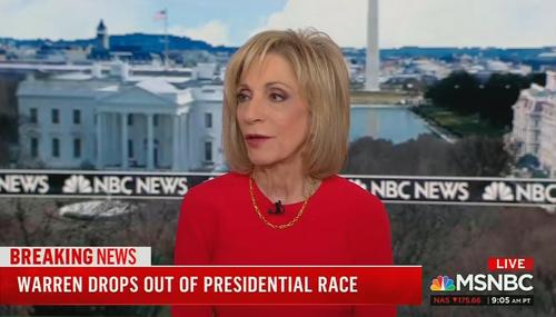 On her Thursday show, MSNBC's Andrea Mitchell lamented the news that Elizabeth Warren has decided to drop out of the presidential election leaving two septuagenarian white males as the only remaining credible choices in the Democratic Primary.