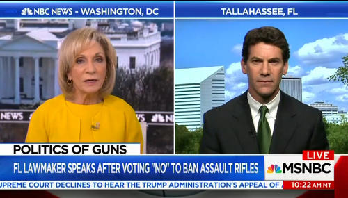 On Tuesday’s Andrea Mitchell Reports, two Florida politicians, a Republican and a Democrat, made back-to-back appearances to discuss gun control. Host Andrea Mitchell took a radically different tone with each interviewee – both of whom are seeking statewide elected office in 2018 – thus epitomizing MSNBC’s inescapable liberal bias.
