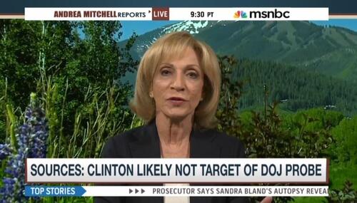 Andrea Mitchell scored an interview with Democratic presidential candidate Bernie Sanders on Friday, but spent the entire interview peppering the senator with questions about Hillary Clinton. This included pushing Sanders on whether Bill Clinton's claim of innocence would be enough to drop any investigation into the family's foundation.