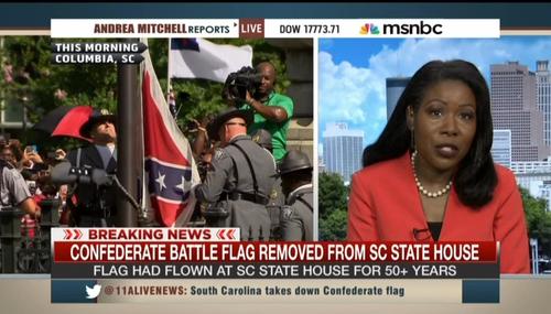 On July 10, following the removal of the Confederate battle flag from Capitol grounds in South Carolina, a panel discussed the historic event on MSNBC's Andrea Mitchell Reports. Guest host Craig Melvin brought Pulitzer Prize winning author Isabel Wilkerson to the program. He asked the author to put the removal of the flag into “historical perspective.” Wilkerson remarked that we are “witnessing…