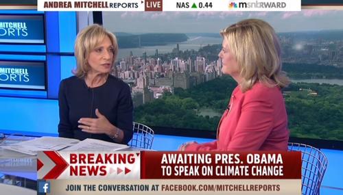 On her 12 p.m. ET hour MSNBC show on Tuesday, host and NBC chief foreign affairs correspondent Andrea Mitchell, along with chief environmental affairs correspondent Anne Thompson, gushed over President Obama's effort to push the climate change agenda. Mitchell touted how Obama "will be delivering remarks at the United Nations Climate Action Summit" and "is expected to call on world leaders to…