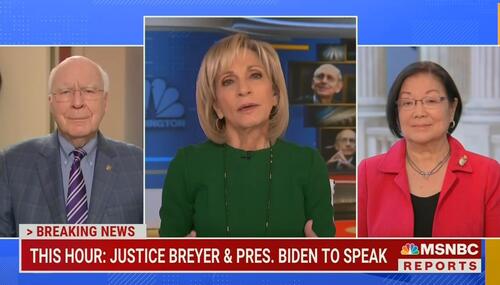 MSNBC's Andrea Mitchell spent her Thursday show plotting strategy with Democratic Sens. Patrick Leahy and Mazie Hirono on President Biden's upcoming Supreme Court nominee. The senators also blamed Sen. Mitch McConnell and Republicans for why Supreme Court confirmations have become politicized and instead of pushing back on that talking point, Mitchell wholeheartedly agreed.
