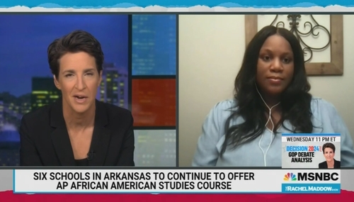 MSNBC’s Rachel Maddow and NBC national reporter Bracey Harris teamed up on the former’s Monday show to discuss Arkansas’s announcement that AP African American Studies will not count towards graduation credits because it is still a pilot program. Extrapolating from that, the duo suggested the state will not teach about the Little Rock Nine, which is simply not true.