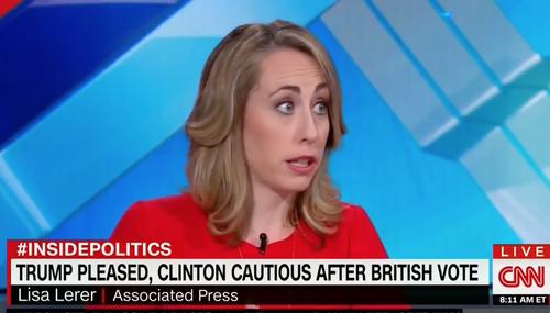 Associated Press reporter Lisa Lerer told other panel members who were criticizing Hillary Clinton for her lack of an in-person public statement on the the results of Thursday's Brexit referendum that they should doubt the legitimacy of the result. She did so by referring to "all the…