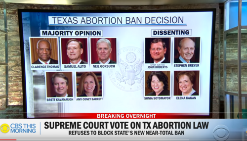 CBS This Morning on Thursday reacted to the big, breaking news that the Supreme Court has refused to halt Texas’s bill banning abortion after six weeks. Reporter Ben Tracy dismissed it as stopping abortion “once a so-called fetal heartbeat is detected.” He also spun the move by the Court’s conservatives “contradictory” and “stunning” to liberals.