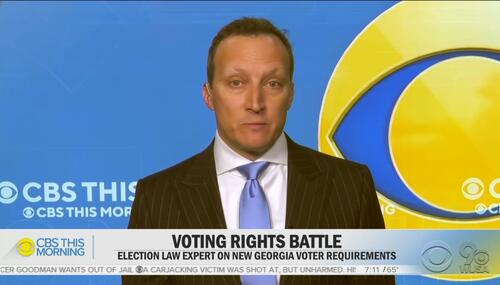 Democrats say it and journalists parrot it back. That’s how things work in a Democratic administration. Joe Biden on Thursday slimed the state of Georgia for an “un-American” election security bill. CBS’s election law expert on Friday upped that to “anti-American.” Appearing on CBS This Morning, he derided the whole state, despite admitting that the bill was a “mixed bag.”