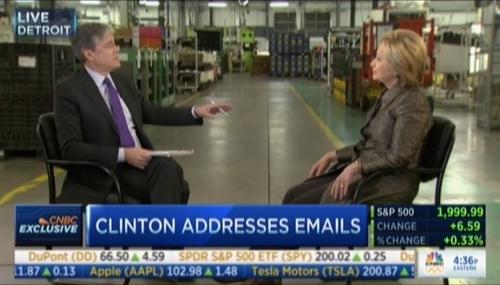 During a Friday afternoon interview with Hillary Clinton, CNBC’s John Harwood asked the presidential candidate about the current FBI investigation into her e-mail practices.  Clinton defended herself from allegations of misconduct stating “I've been the most transparent public official in modern times, as far as I know.”
