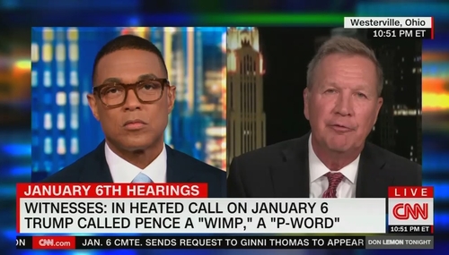 On CNN’s Don Lemon Tonight on Thursday evening, host Don Lemon brought on former Ohio Governor and “Never Trump” Republican John Kasich to discuss the ongoing partisan January 6 committee hearings.