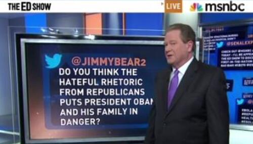 On his MSNBC show today, Schultz gave an emphatic "yes" in answer to this question from a viewer: "do you think the hateful rhetoric from Republicans puts President Obama and his family in danger?"