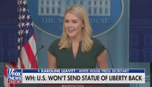 During a briefing Monday afternoon otherwise dominated by probing questions about the weekend deportation flights of dangerous illegal immigrants who belong to the Venezuelan gang Tren de Aragua (TdA), White House Press Secretary Karoline Leavitt took a moment to zing the French after a French member of the European Parliament demanded the U.S. return the Statue of Liberty.