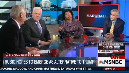 On Wednesday's edition of Hardball with Chris Matthews, a shouting match about how the black community views Donald Trump’s “Make America Great Again” slogan was brought to a screeching halt when Matthews insisted: “[Y]ou’re right about Reince. I agree with your one point or a lot of what she says. But when Reince Priebus’ — his number one goal is to keep blacks from voting.”
