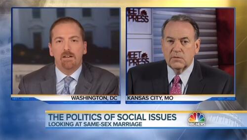 While badgering Mike Huckabee on Sunday, Meet the Press anchor Chuck Todd inaccurately claimed that overturning Roe V. Wade would make abortion "illegal."