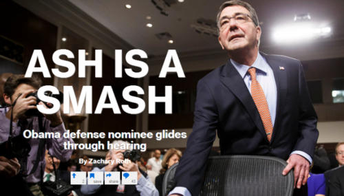 Covering Obama Defense Secretary nominee Ash Carter's Senate confirmation hearing today, MSNBC.com writer Zachary Roth painted a picture of a man who is gliding along smoothly into his post as the new Pentagon chief. But completely omitted from his story was any mention of Carter's rambling non-answer to Sen. John McCain's inquiry as to what Carter understands Obama administration strategy for…