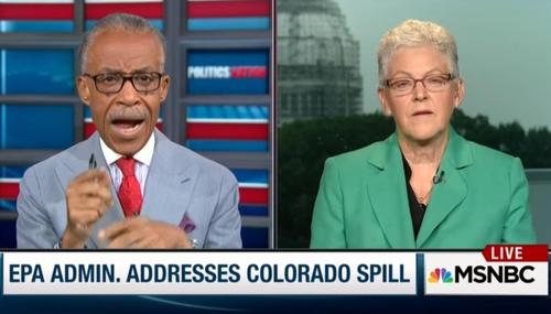 Last week, you may recall, an EPA bureaucrat fouled the Animas River in Colorado by accidentally unleashing a torrent of polluted water from an abandoned mine. Fast forward to today and the Obama/McCarthy EPA's announcement of a new rule intended to tighten methane emissions from oil and natural gas exploration. MSNBC host the Rev. Al Sharpton brought on EPA administrator Gina McCarthy to discuss…