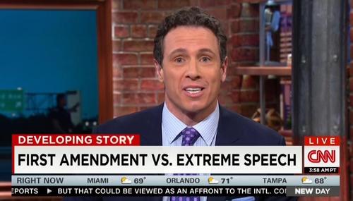 The reliably liberal Politifact (through its Punditfact site) surprisingly took CNN’s New Day co-host Chris Cuomo took task on Thursday for his rather suspect claim on Twitter from Wednesday that “hate speech is excluded from protection” under the First Amendment. Through its Punditfact site, Politifact’s Lauren Carroll noted his numerous attempts to clarify his remarks and citations of case law…