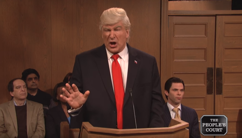 Alec Baldwin is back again on Saturday Night Live, depicting an ignorant and buffoonish Donald Trump to the besotted hosts of Fox & Friends in last night's opening skit.
