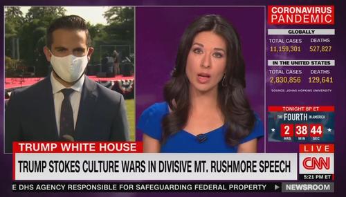 On Friday night, President Trump began the Fourth of July weekend with a 42-minute speech celebrating American history, our Founding documents, and patriotism at Mount Rushmore. Naturally, CNN and MSNBC chose to declare it “a culture war bonfire,” “a love letter to white supremacy,” “divisive,” and laden with “racist dog whistles.” MRC analysts examined CNN and MSNBC’s Friday and Saturday…