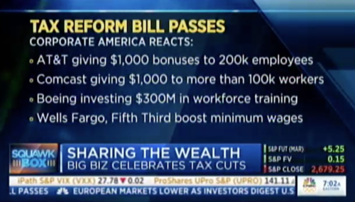 Libs Gripe as Companies Announce Bonuses, After Tax Bill Passes