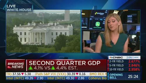 CNBC’s Squawk on the Street and Bloomberg.com viewed the latest U.S. GDP report as good news for the Trump administration. The 4.1 percent second-quarter GDP estimate announced July 27, was the best quarterly pace in almost four years. Bloomberg.com called it a “Win for Trump” that same day.