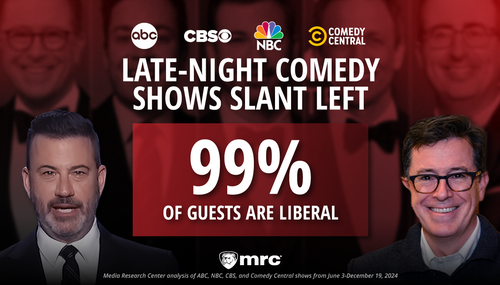 From the beginning of June through the end of December, the late night comedy shows welcomed 120 liberal guests and only one conservative, according to a new NewsBusters study.