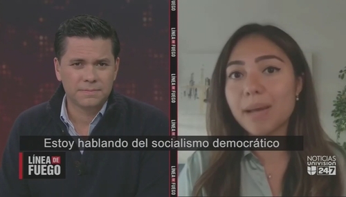 Kristen González, the Democrat primary winner for NYC's newly-drawn Senate District 59, spent time on Univision's Linea de Fuego praising the marvels of 'democratic socialism' on Monday, only to be schooled by anchor Luis Carlos Velez on what it really means to millions of Hispanics fleeing from socialist countries in Latin America, including those tuned-in to the political analysis…