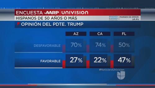 Univisión recusa popularidad de 47% de Trump entre hispanos 50+