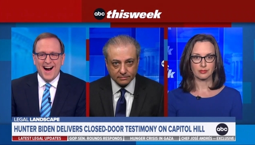 ABC This Week co-host Jonathan Karl has written three books attacking Donald Trump, but he clearly has nothing in the works on the Biden family influence-peddling business. On his Sunday show, he spent five minutes discussing legal troubles for Trump, and only one minute at the end demanding his guests agree the House Republicans are getting nowhere in their impeachment inquiry.