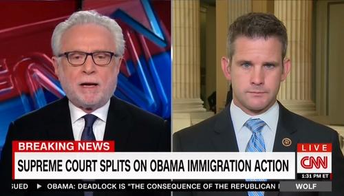 As Illinois GOP Rep. Adam Kinzinger appeared as a guest on Thursday's Wolf show to react to the Supreme Court ruling against President Barack Obama's executive order helping illegal immigrants get work permits, CNN host Wolf Blitzer at one point begged of his Republican guest on whether he "feels bad for" the millions of illegals affected by the decision.
