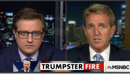 During Monday night's edition of MSNBC's All In With Chris Hayes, the liberal host tried again and again to get guest Jeff Flake to condemn Donald Trump and recommend that members of the Republican Party not vote for him, even going so far as to ask the GOP senator from Arizona: “Who are you going to vote for for president this fall?” Ironically, Hayes brought up Albert Einstein's motto “about…