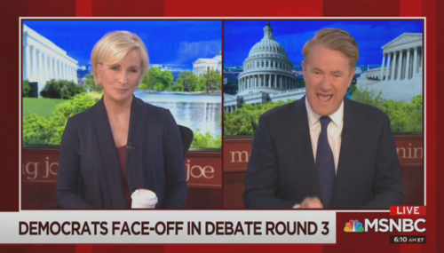 On Morning Joe, Joe Scarborough is angry at the Democrat presidential contenders for having, in last night's debate, focused on the details dividing them regarding health care. He suggests that they should instead paint the bigger picture: "the Democratic Party supports universal healthcare as a right for all Americans! Donald Trump wants to destroy your right to having health care as an American…