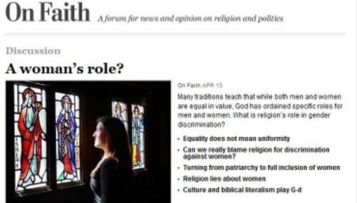 With its latest discussion question, the Washington Post/Newsweek "On Faith" website explored the overly-broad and loaded question "What is religion's role in gender discrimination?"