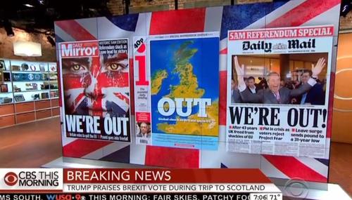 Journalists on all three networks on Monday continued to howl with outrage over Britain’s decision to exit the European Union. Reporters on ABC, CBS and NBC attacked the “worst decision” that could lead to “economic disaster.” On the Today show, analyst Jim Cramer assailed, “In terms of the financial chaos and collapse, it’s just one of the worst moves I’ve seen.”