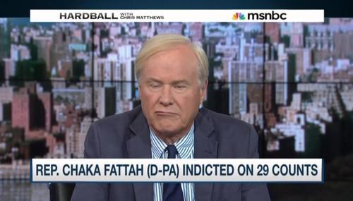 MSNBC host and native Philadelphian Chris Matthews devoted less than a minute tonight to news of numerous federal indictments handed down today against Rep. Chaka Fattah (D-Pa.). The Hardball host prefaced the story by editorially commenting, "This is sad news."