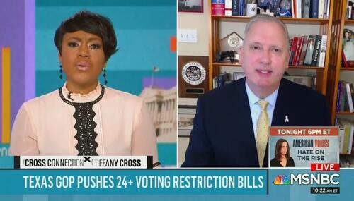 MSNBC weekend host Tiffany Cross, speaking with Republican Chuck DeVore on the subject of voter fraud and Republican proposals to combat it, says: "It's a pet peeve when people spit in my face and try to convince me it's raining. This is voter suppression by no other name. That's very obvious to us."