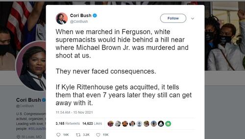 On November 15, Rep. Cori Bush (radical D-Mo.) tweeted that “When we marched in Ferguson, white supremacists would hide behind a hill near where Michael Brown Jr. was murdered and shoot at us.” Where were the “Fact Checkers”? FactCheck.Org? No. The Washington Post? No. PolitiFact ignored it, although they posted two “False” ratings on Kevin McCarthy on November 19.