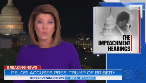 At a Thursday press conference, House Speaker Nancy Pelosi (D-CA) essentially authorized the use of the word “bribery” to describe President Trump’s phone call with the president of Ukraine. The broadcast networks gushed about her use of the word and showed their approval by roundly noting that bribery was an impeachable offense explicitly laid out in the Constitution.