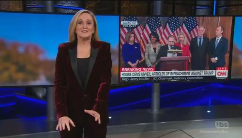 Full Frontal host Samantha Bee began her opening monologue Wednesday night by expressing her excitement that “the Democrats announced articles of impeachment this week.” Throughout the monologue, Bee made it perfectly clear that the “impeachment fever” she came down with three weeks ago has not subsided at all.