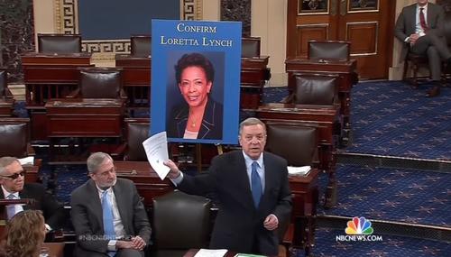 ABC and CBS on Wednesday night and Thursday morning ignored Democratic Senator Dick Durbin's smear that Republicans are keeping attorney general nominee Loretta Lynch in the "back of the bus." NBC mentioned the liberal politician's attack, but featured no critical analysis or questioning of the remark.