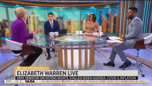 CBS News and Senator Elizabeth Warren (D-MA) spent Monday night and Tuesday morning in open partnership and joined at the hip, strategizing over the course of 23 minutes a path forward on their so-called voting rights agenda, axing the filibuster, primarying Democrats who diagree with them, spewing lies about conservatives, and even permanently eliminating the “anti-Democratic” Senate.