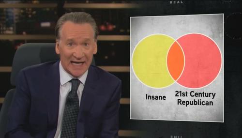During Friday’s edition of Real Time With Bill Maher, the eponymous host concluded his satirical segment “new rules” with a lecture to potential independent 2020 candidate Howard Schultz; which basically ended up as a five-minute monologue trashing the Republican Party. At one point in the monologue, Maher asserted that “if you drew a Venn diagram of insane and 21st Century Republican, it would…
