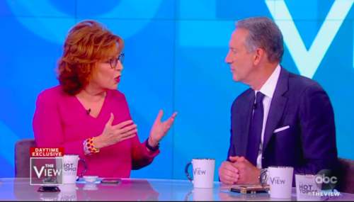 Tuesday on The View, the hosts interviewed potential 2020 independent candidate and former Starbucks CEO Howard Schultz. Despite Schultz’s liberal politics, the notion that he could be more moderate than Democrats running and thus steal votes away from Dems has driven the media to hysterics, including the women at The View.
